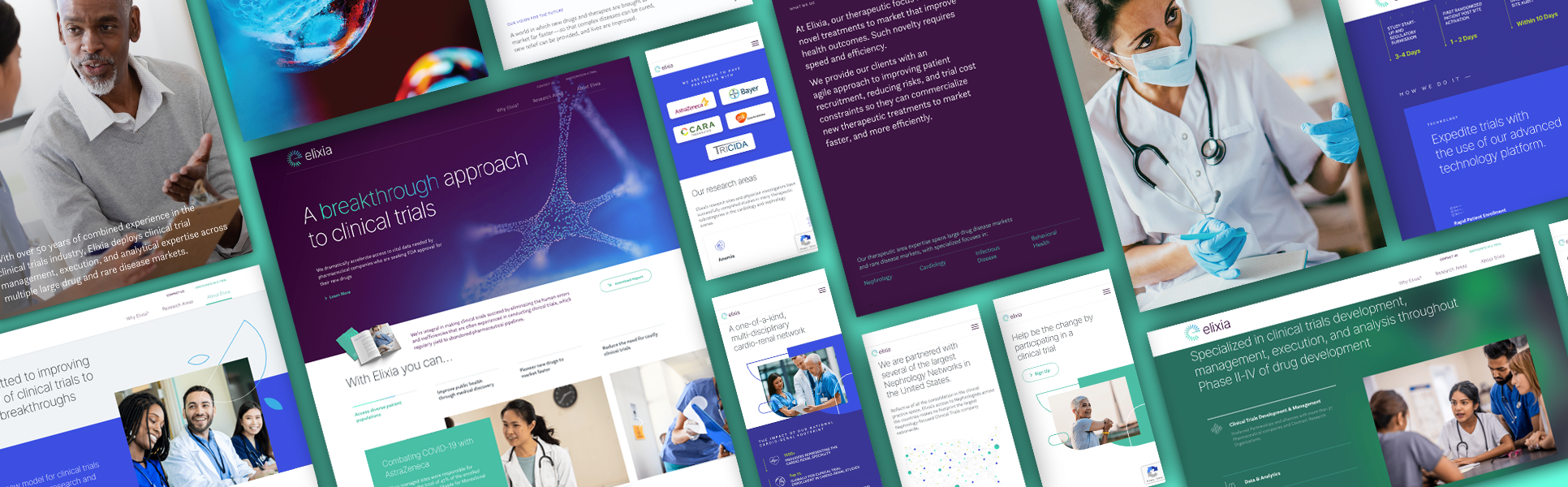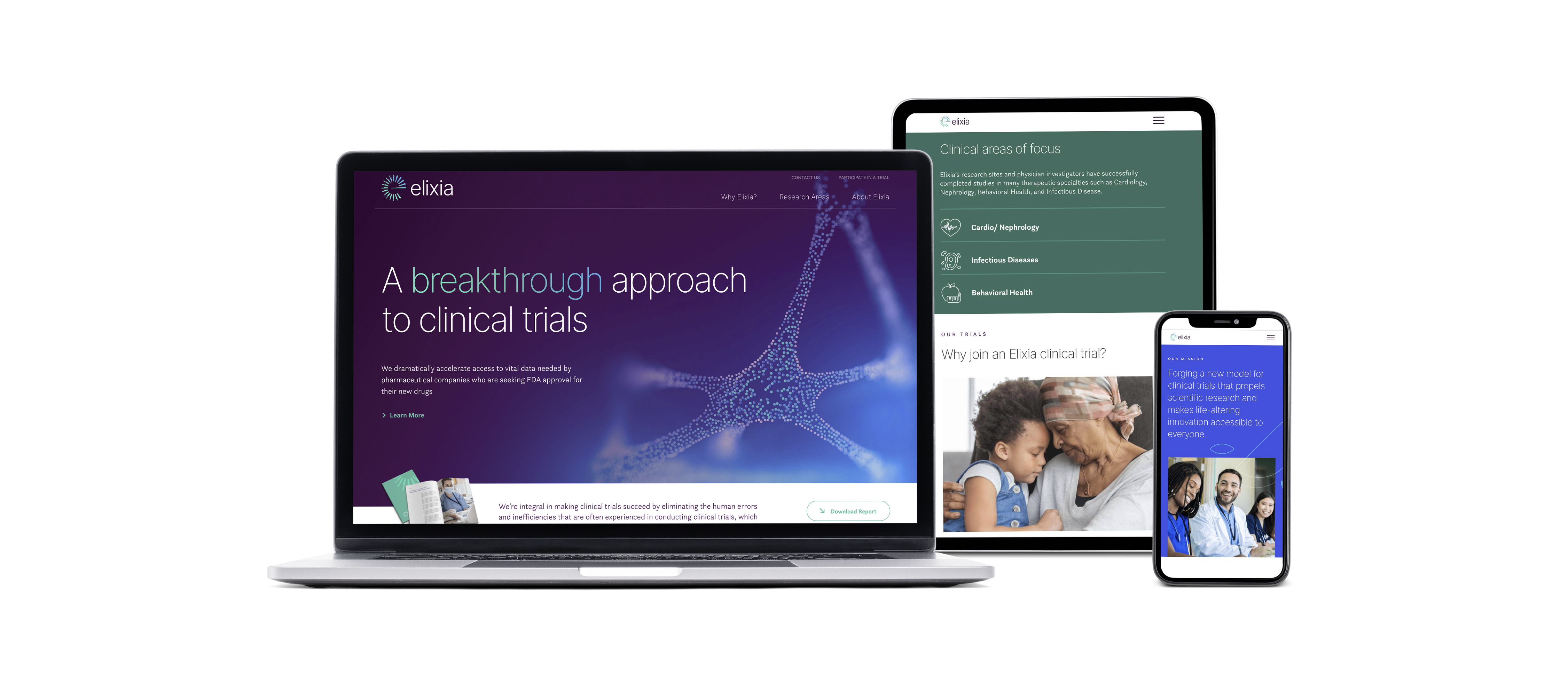 Elixia was in need of a new consolidated, and more serious strategic rebrand to encompass its expansive growth within the clinical trial space. The company experienced rapid growth through the pandemic and needed a digital presence and published content exemplified its impact, expertise, and unique approach to the conduct of clinical trials.